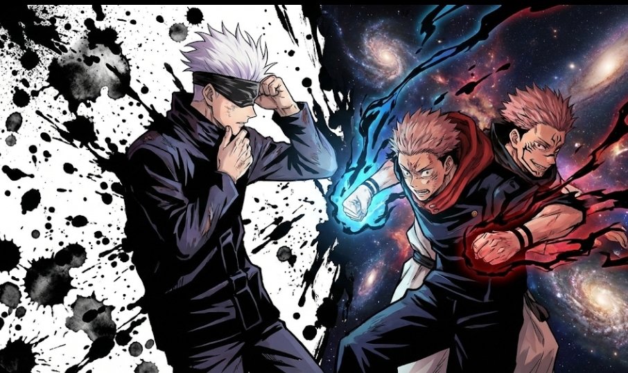 En el fanart podemos ver qué Satoru Gojo un poco desgastado terminaría por exorcizar a Itadori y a Sukuna a la vez. gracias a un dominio expandido donde el tiempo se limita a 0.0000000001 segundo, dejando a merce del gran Satoru Gojo a ambos, siendo suficiente para acabar con Itadori y Sukuna.