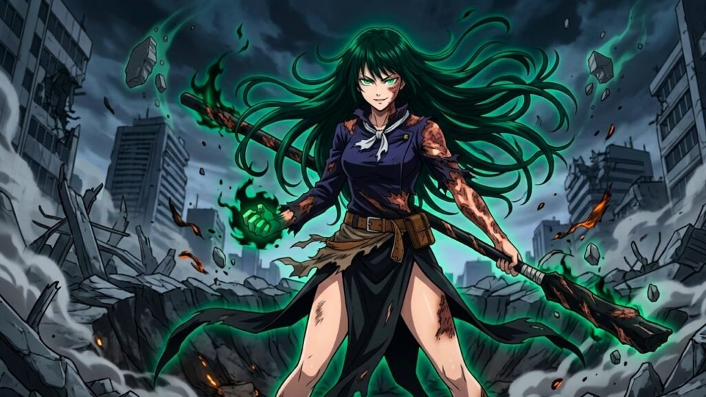 Tatsumaki de One punch Man y Maki Zenin se unen en una fusión muy peculiar, al estilo dragon ball y el resultado te puede llegar a sorprender, mantiene su musculatura y se crea una nueva vestimenta.