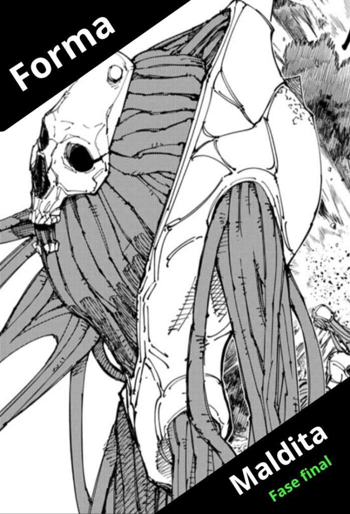 Naoya Zenin en su forma maldita conserva su conciencia y también su técnica, convirtiéndolo en una maldición de grado especial muy peligrosa y de carácter urgente a excorcizar.